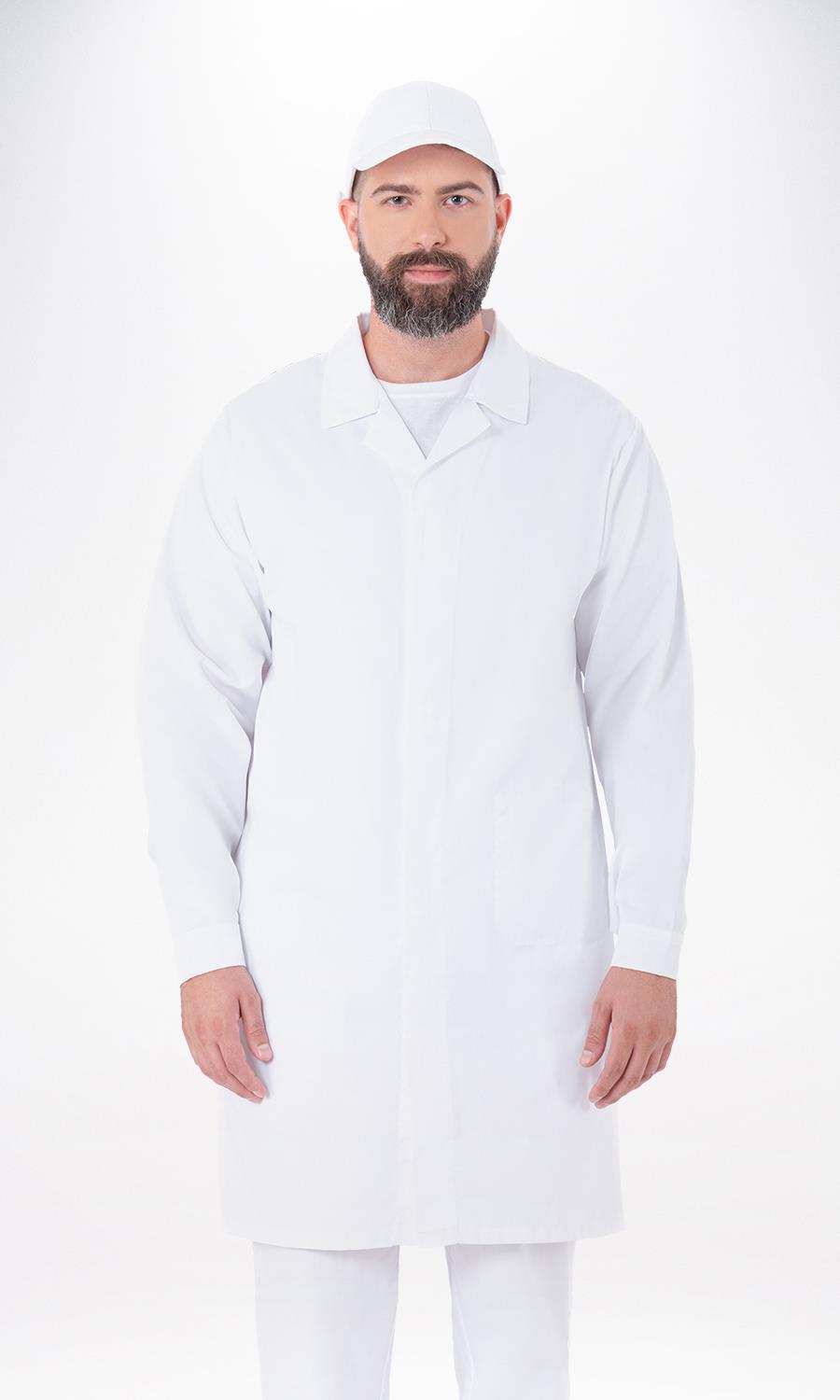 Ρόμπα εργασίας που κλείνει μπροστά με velcro καλυμμένο με πατιλέτα. Μία τσέπη εσωτερικά αριστερά κάτω. Χωρίς εξωτερικές τσέπες. Μανσέτες με velcro. Ελληνικό προϊόν