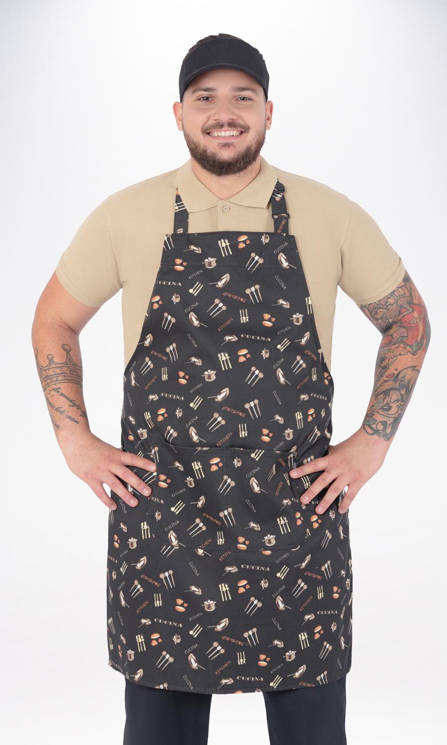 Neck apron with ALLOVER print and a large central pocket with one partition. Adjustable in the neck. Greek product.