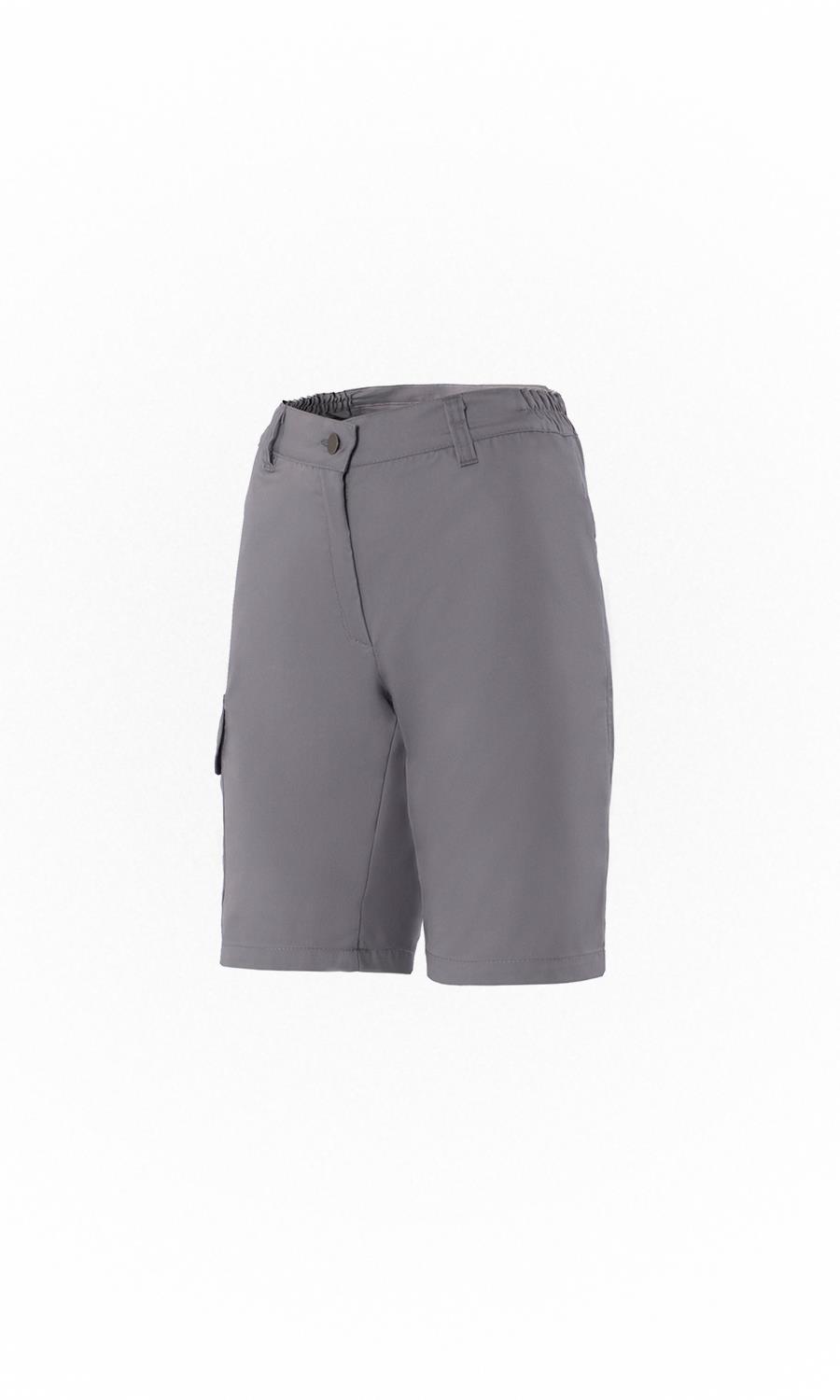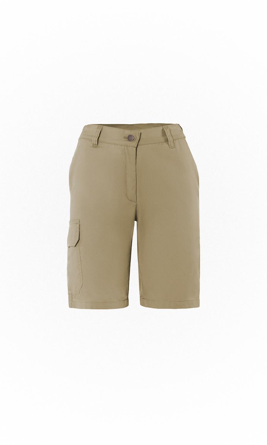 Women's shorts with 2 slit pockets and a pocket with a flap on the right side. Closes in front with metal button and zipper. Elasticated sides on the waistband and 5 loops. Greek product.